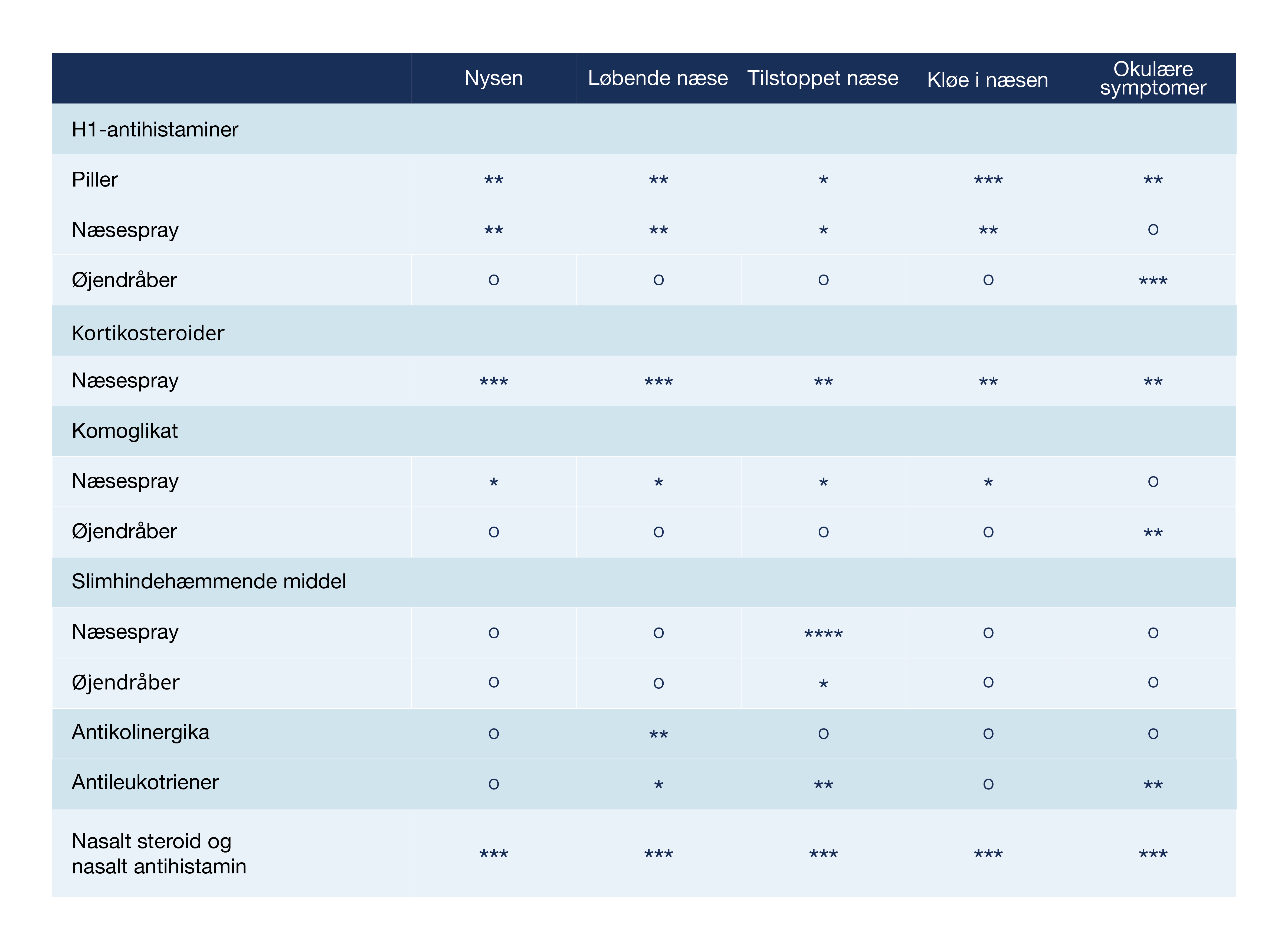 Virkning af farmakoterapi på de forskellige allergiske stoffer rhinitis symptomer: